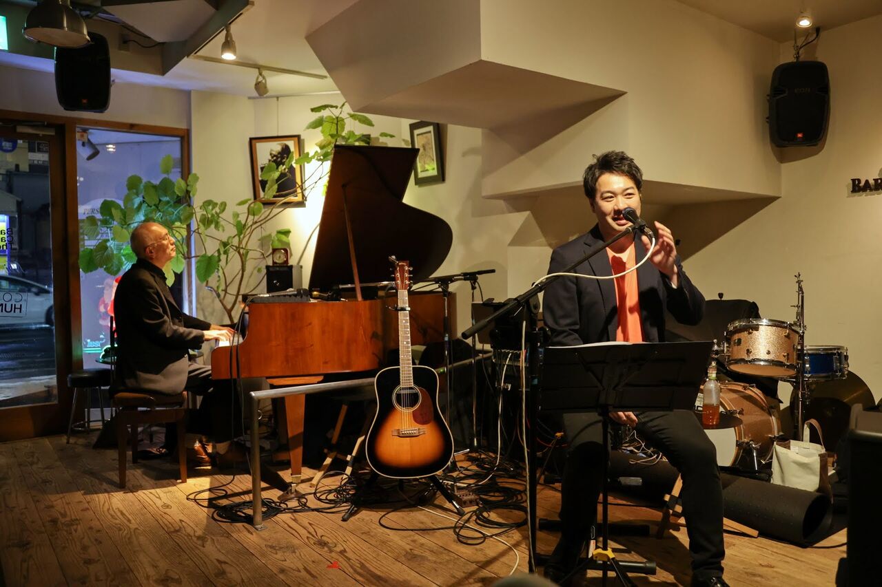 2023年12月17日 運命のウインターマンスリーライヴ初日 2023年12月16日。運命のウインターマンスリーライヴ初日です。リベンジは?お客様の入りは上場。初の橘さんのジャズライブいよいよ開演!北田さんのピアノソロが終わり橘さんが登場!運命の一曲目は「All Of Me」。なんと見事に歌い上げました。マンスリーライブの模様は後日Youtubeにアップしますね。サプライズゲストは絵美夏さん。鬼門のロングトーンも大成功!絵美夏さんとの息もバッチリ!マンスリーライブ初日無事終了!橘くんのジャズ⁈シンガーぶりにお客様も大満足!次回に向けたリクエストもいただき来月に向けてGO!by セコンド